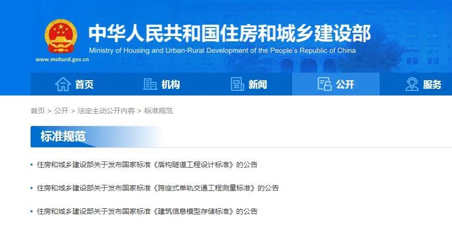 近日,住房和城乡建设部发布国家标准《建筑信息模型存储标准》《盾构隧道工程设计标准》《跨座式单轨交通工程测量标准》,自2022年2月1日起实施。